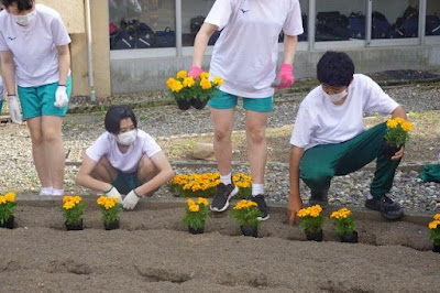 本日、中庭にある花壇=花トピアへの花植え作業を行いました。生徒会役員の呼びかけに、117名のボランティア生徒が作業に参加しました。これからすくすく育っていく花を見るのが、とても楽しみです。