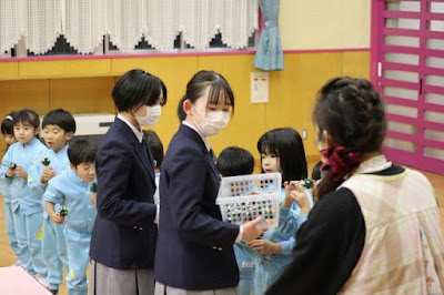 全校集会にて代表生徒からお届けしたことの報告がありました。園児や入院患者の皆さんに喜んでいただいたことを知り、生徒たちも嬉しそうでした。