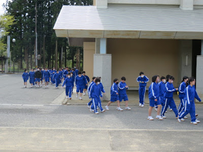 非常ベルと訓練放送が流れると、生徒たちは腰を下ろして放送に耳を傾け、整然と外へ避難。5分以内に点呼も終了できました。米沢消防署東部分署から3名の消防士の方が来校し、訓練の様子について講評をしていただきました。五中生のきびきびした姿を褒めていただきました。
