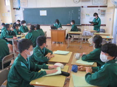 昨日、今年度新規採用教員研修が本校を会場に行われました。置賜管内中学校の9名の初任者が来校し、1年1組の国語の授業を参観しました。